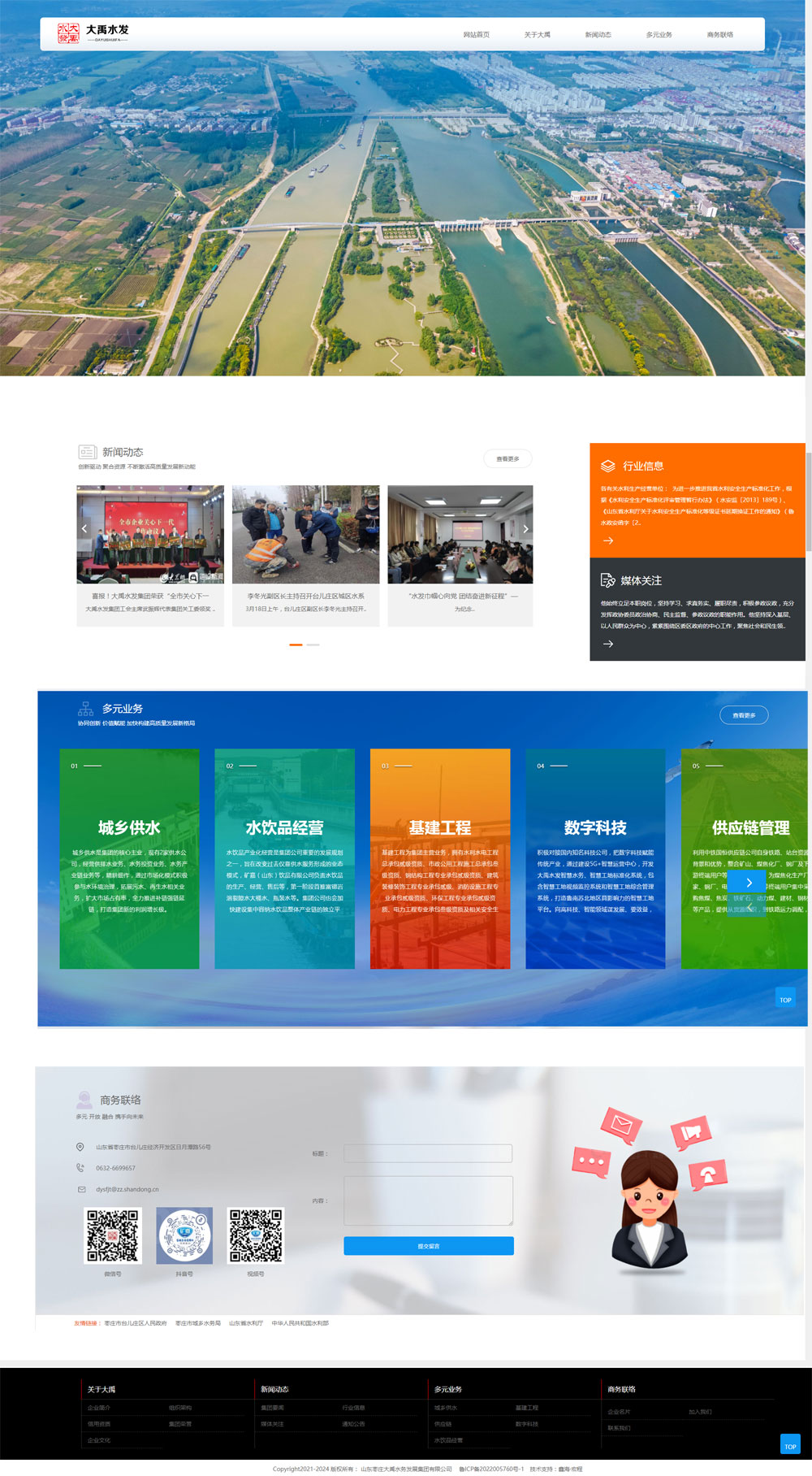 大禹水務發展集團 山東棗莊大禹水務發展集團有限公司(簡稱大禹水發集團)成立于 2021 年 10 月,始創于 1962 年臺兒莊區成立的自來水服務處,系臺兒莊區屬國有企業。下設棗莊大禹水利工程有限公司、棗莊市潤禹水務供水有限公司、棗莊大禹供水有限公司、棗莊潤源建設工程有限公司、棗莊宏禹數字科技有限公司、山東海宸鋼結構工程有限公司 6 家子公司。擁有水利水電工程總承包貳級資質、市政公用工程施工總承包叁級資質、鋼結構工程專業承包貳級資質、消防設施工程專業承包貳級資質、建筑裝修裝飾工程專業承包貳級、環保工程專業承包貳級資質。