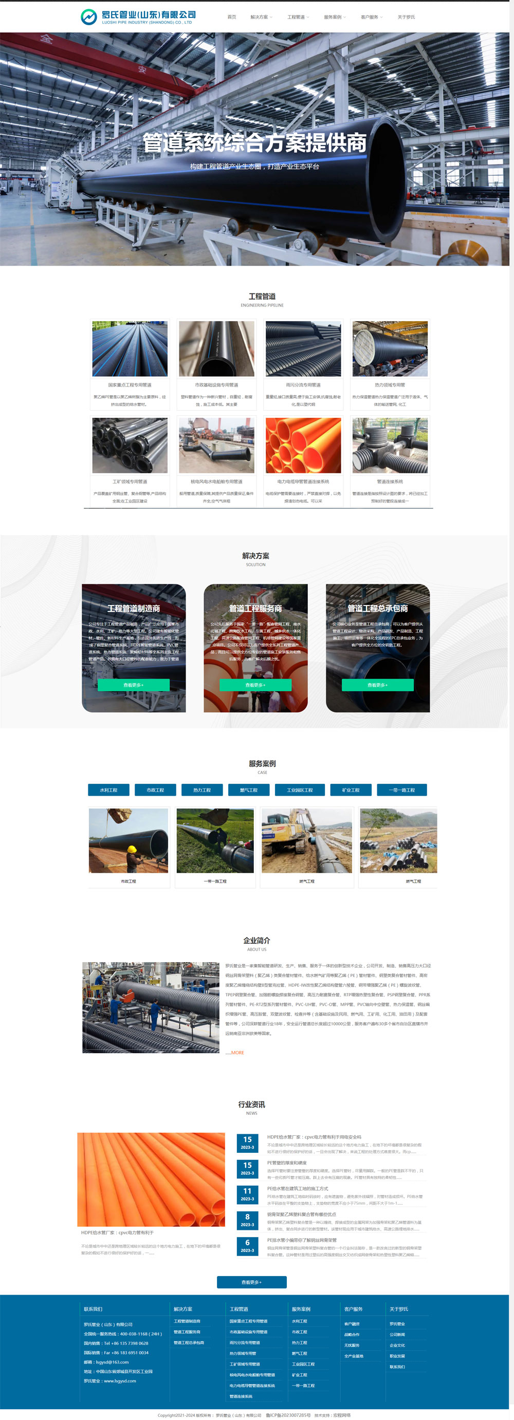 羅氏管業(yè)是一家集智能管道研發(fā)、生產(chǎn)、銷售、服務(wù)于一體的創(chuàng)新型技術(shù)企業(yè),公司開發(fā)、制造、銷售高壓力大口徑鋼絲網(wǎng)骨架塑料(聚乙烯)類復(fù)合管材管件、給水燃?xì)獾V用等聚乙烯(PE)管材管件、鋼塑類復(fù)合管材管件、高密度聚乙烯纏繞結(jié)構(gòu)壁B型管克拉管、HDPE-IW改性聚乙烯結(jié)構(gòu)壁管六棱管、鋼帶增強(qiáng)聚乙烯(PE)螺旋波紋管、TPEP鋼塑復(fù)合管、加強(qiáng)筋螺旋焊接復(fù)合鋼管、高壓力耐磨復(fù)合管、RTP增強(qiáng)熱塑性復(fù)合管、PSP鋼塑復(fù)合管、PPR系列管材管件、PE-RT2型系列管材管件、PVC-UH管、PVC-O管、MPP管、PVC軸向中空壁管、熱力保溫管、鋼絲編織增強(qiáng)PE管、高壓膠管、雙壁波紋管、檢查井等(含基礎(chǔ)設(shè)施及民用、燃?xì)庥谩⒐さV用、化工用、油田用)及配套管件等,公司深耕管道行業(yè)18年,安全運行管道總長度超過10000公里,服務(wù)客戶遍布30多個省市自治區(qū)直轄市并遠(yuǎn)銷南亞非洲歐美等國家。